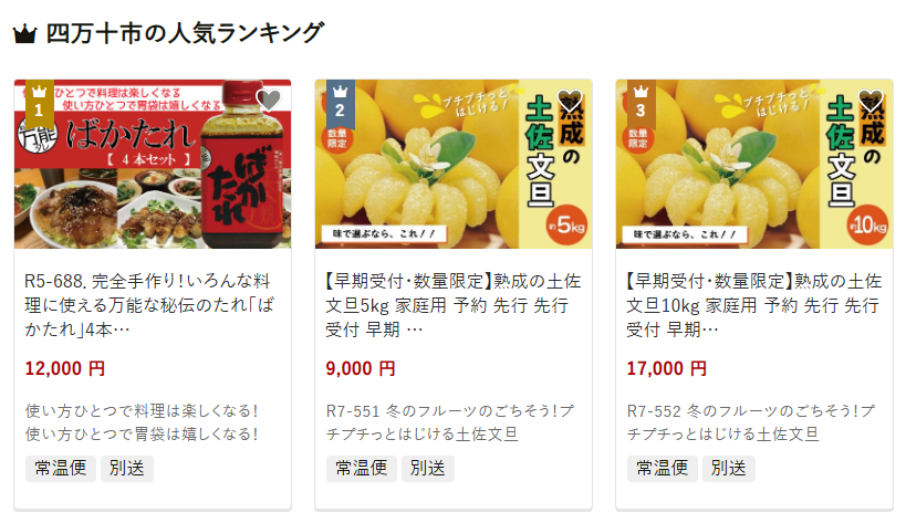四万十市のふるさと納税人気返礼品ランキング【TOP3】