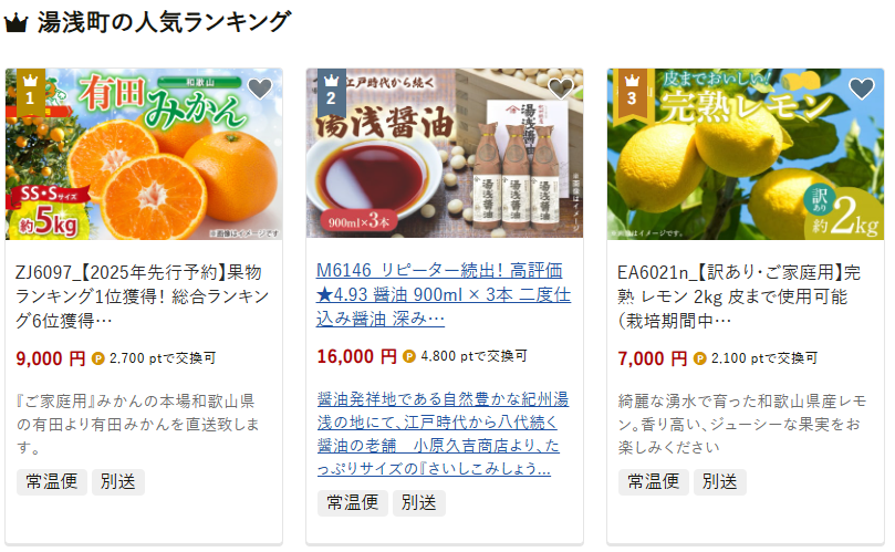 湯浅町のふるさと納税人気返礼品ランキング【TOP3】